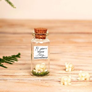 14th Anniversary Elephant Keepsake: Personalized Photo Gift in a Bottle