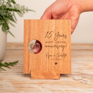 15th Anniversary Wood Card: Crystal Heart, Personalized Engraving