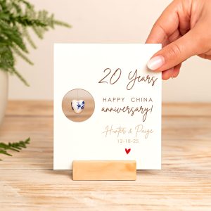20th China Anniversary Gift, Porcelain Heart Wood Card, Personalized Wedding Gift for Him Her, Custom Laser Engraved Wooden Anniversary Card