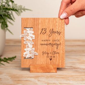 13th Anniversary, Lace Keepsake Anniversary Card, 13 Year Lace Gift, Paper Card, Wedding Custom Wood Engraved Card, Wood Gift for Him & Her