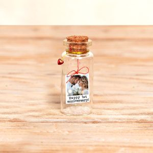 1st Anniversary Gift, 1st paper Personalized Gift for Him & Her, Photo in Bottle with Red String, Perfect 1 Year Anniversary Picture Present