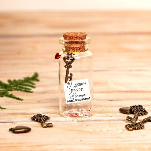 19th Bronze Anniversary Gift, Bronze Key Charm Bottle Keepsake with Photo Collage, Personalized Gift for Him, Key in bottle, 19 Year Gift