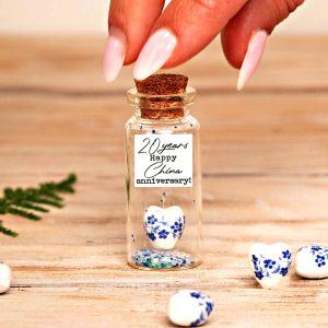 20th Anniversary Gift, China Anniversary Gift, Porcelain Heart Bottle with Photo Strip Gift, Personalized 20 Anniversary Keepsake, Wedding