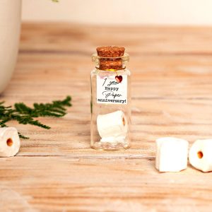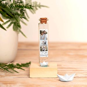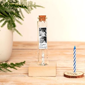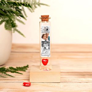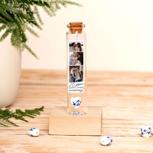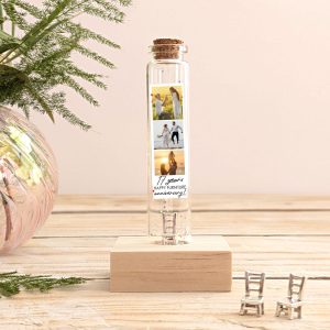 2 Year Cotton Anniversary Gift, Photo Collage Keepsake Bottle, Miniature Personalized 2nd Year Wedding Anniversary Gift with Photo Strip
