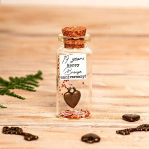 19th Bronze Anniversary Gift, Bronze Heart Bottle with Photo, Personalized Wedding Gift & Keepsake, Custom Gift for Him and Her
