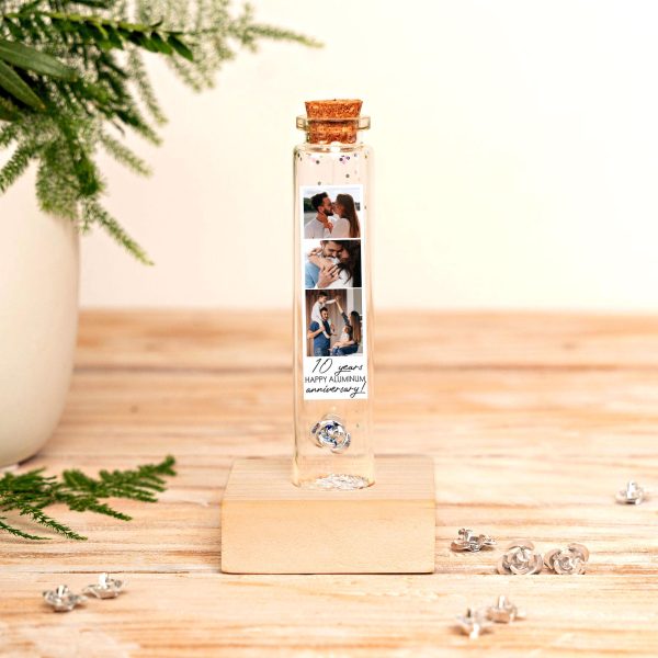 10th Aluminum Anniversary Gift, Aluminum Flower Bottle with Photo, Miniature, Keepsake, Personalized Wedding Gift for Him & Custom Portrait marks your aluminum anniversary with style. This tenth anniversary and ten year anniversary gift features an elegant aluminum flower in a mini bottle alongside your cherished snapshots in a photo keepsake gift style. Ideal as wedding gifts or anniversary gift for him, it doubles as a personalized gifts experience—complete with custom portrait—for a lasting keepsake.
