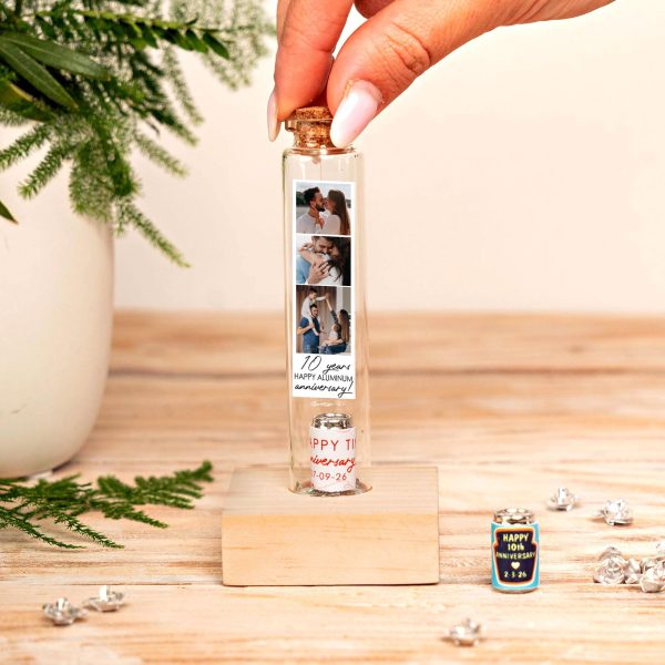 10th Tin Wedding Anniversary Gift, Mini Tin Bottle with Photo Strip, It Has Bean Tin Years, Personalized 10 Year Anniversary, Gift for Him is a playful twist on the tin anniversary tradition. This tin anniversary keepsake and tenth anniversary gift features a mini tin bottle engraved “It Has Bean Tin Years” alongside your cherished snapshots in a photo strip gift. Ideal as a wedding anniversary or anniversary card, it also makes a charming tin anniversary gift for her or him, complete with your custom photo gift for a personalized touch.