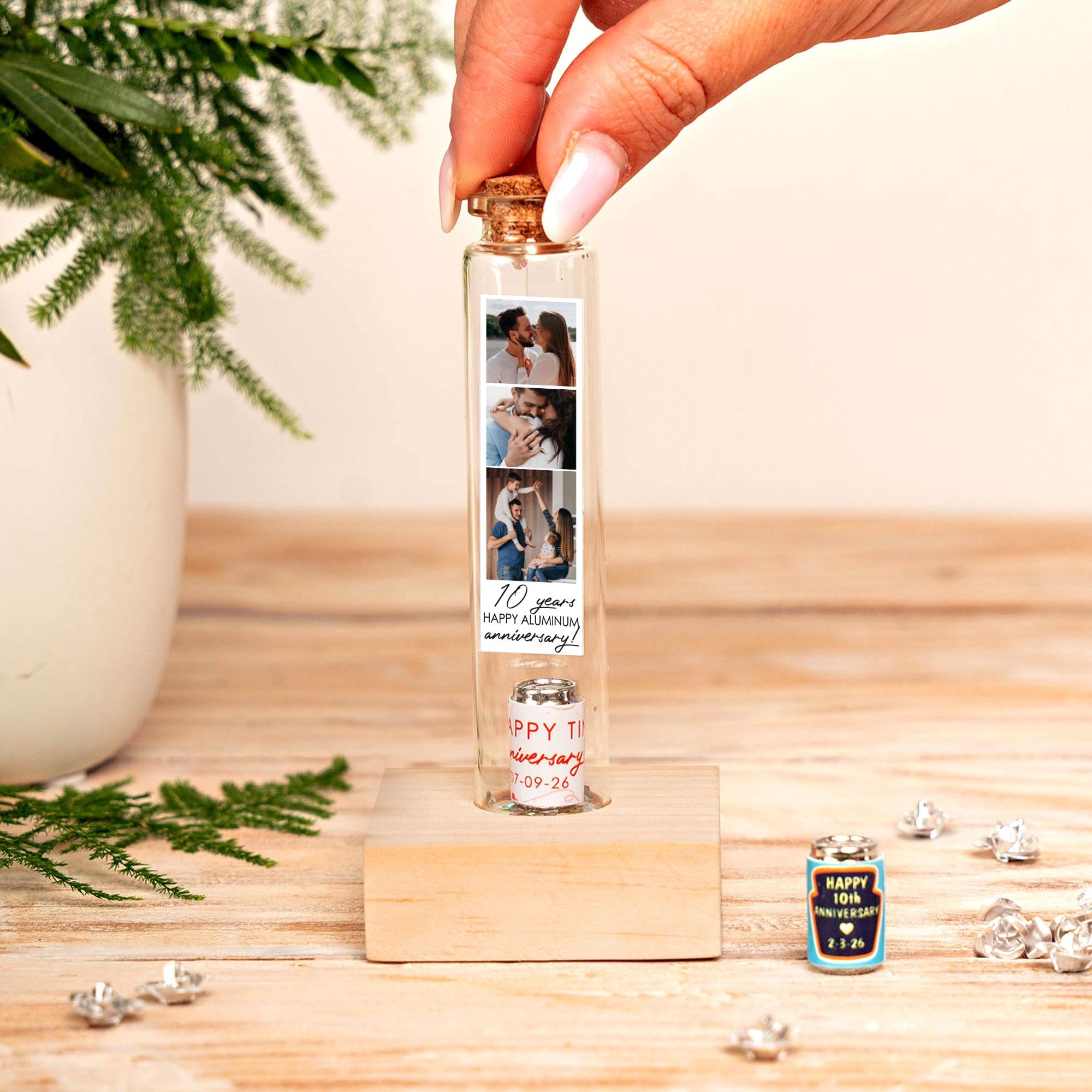 10th Tin Wedding Anniversary Gift, Mini Tin Bottle with Photo Strip, It has Bean Tin Years, Personalized 10 Year Anniversary, Gift for Him