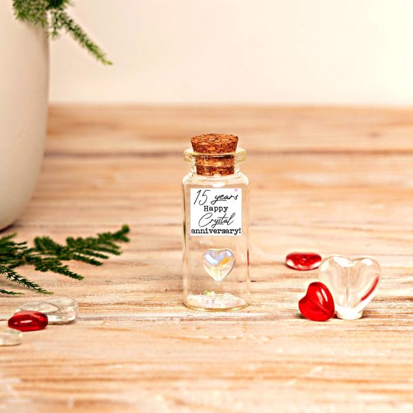 15th Crystal Anniversary Gift, Transparent Crystal Heart Bottle, Custom Portrait, Personalized 15 Year Wedding Anniversary Gift 15 Crystal celebrates your crystal anniversary in dazzling style. This 15 year anniversary keepsake doubles as a heartfelt anniversary gift and unique 15 anniversary card, featuring a shimmering crystal heart suspended in a petite bottle alongside your custom portrait. Perfect among personalized gifts for your wedding anniversary, and to honor 15 years married and 15 years wedding, it captures the brilliance of 15 years crystal in an unforgettable 15 year crystal card for your 15 years anniversary.