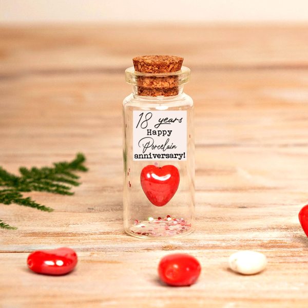 • Scarlet ceramic heart represents love’s strength and handcrafted elegance on your eighteenth anniversary.