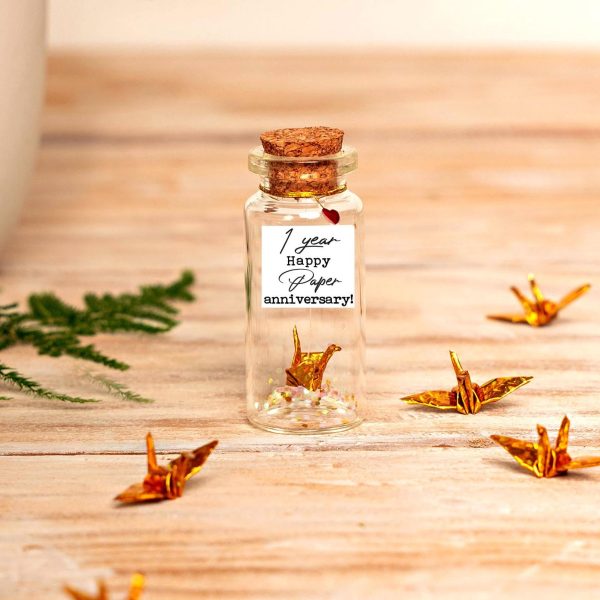 1st Paper Anniversary Gift, Miniature Gold Origami Crane Bottle with Photo, Personalized 1 Year Anniversary Gift for Him & Her, Paper Crane is the ultimate 1st anniversary gift to commemorate your first anniversary. This paper anniversary keepsake transforms your one year anniversary into an unforgettable celebration.