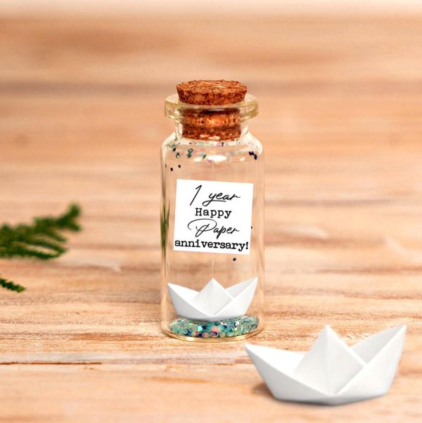1st Paper Anniversary Gift, Origami Boat Bottle with Photo, Personalized One Year Anniversary Keepsake, Perfect Gift for Him & Her, 1st year marks your paper anniversary, celebrating your first anniversary with this charming 1st anniversary gift.