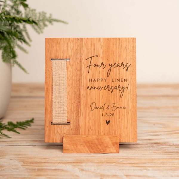 4th Anniversary Linen & Wood Card: Engraved Keepsake Gift
