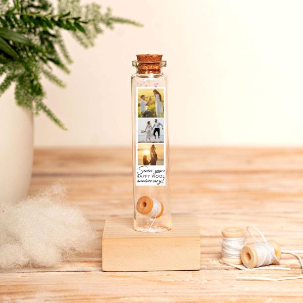 7th Wool Anniversary Gift, Mini Wool Reel Bottle with Photo Gifts, Personalized Keepsake for Him & Her, Anniversary Card, Wool Gift, 7 Year transforms your traditional wool anniversary into a heartfelt 7th anniversary gift. This custom wool gift features a mini wool reel and your favorite prints as photo strip gift—ideal among our best wedding gifts and a perfect gift for him in a personalized bottle. As one of our most memorable personalized gift options, it doubles as a treasured anniversary keepsake complete with beautiful photo gifts.