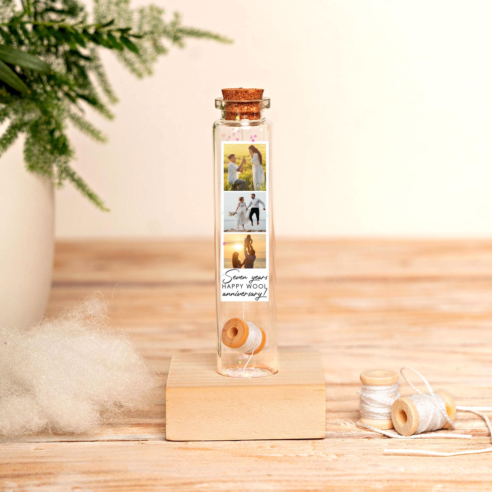7th Wool Anniversary Gift, Mini Wool Reel Bottle with Photo Gifts, Personalized Keepsake for Him & Her, Anniversary Card, Wool Gift, 7 Year