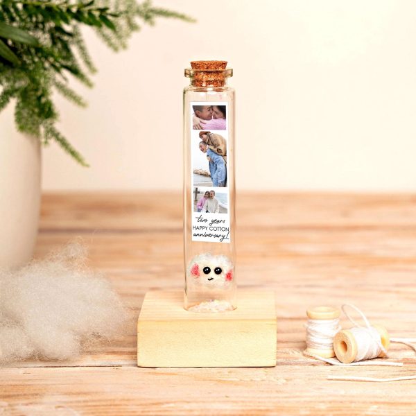 Cloud Gift, 2nd Cotton Anniversary, Cloud Nine, Miniature Cotton Cloud Bottle with Photo, Personalized 2 Years Anniversary Gift for Her & Him invites you to celebrate your cotton anniversary and second anniversary with a whimsical cotton cloud keepsake that lives up to its cloud nine name. This 2nd anniversary gift (or 2 anniversary gift) for your two year anniversary or 2 cotton anniversary comes with your favorite photo gifts inside, making it a standout among wedding gifts and an unforgettable gift for her or personalized gift for both of you. With its custom photo, it’s an airy custom photo gift and a delightful surprise for gifts for couples.
