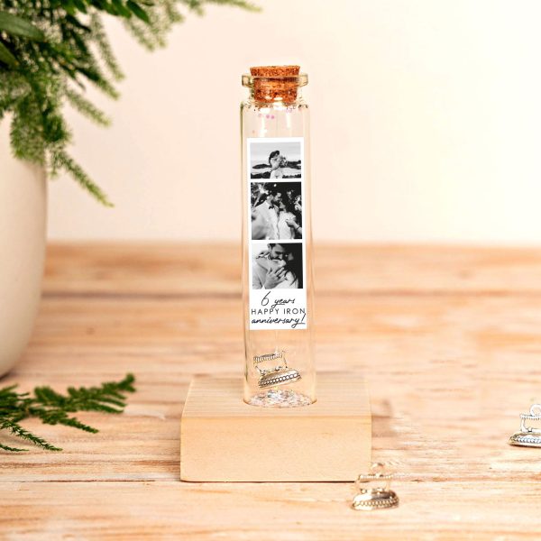 Iron Anniversary Gift, 6 Year Anniversary, Miniature Iron Clothe Machine Bottle with Photo Collage, Personalized Keepsake for Him & Couples.