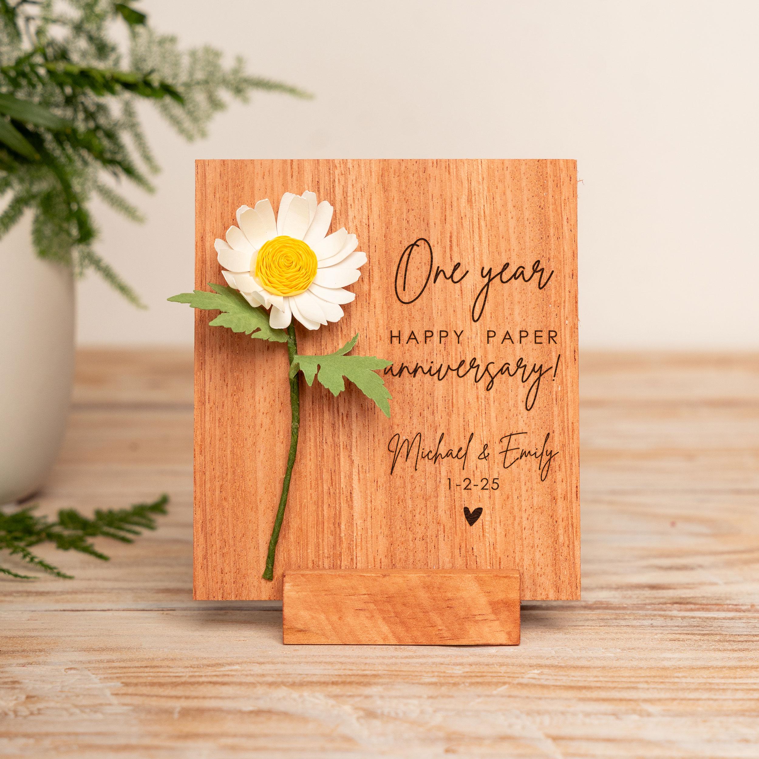 Paper Anniversary Gift, Custom Wood Or Paper Card with Handmade Paper Flowers, Personalized First Year Gift Card, Handmade Flowers for Her.