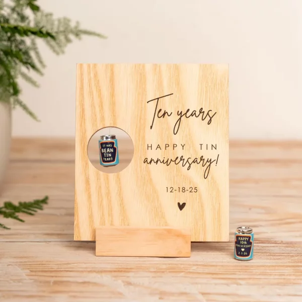 • Why Tin? Tin signifies preservation and durability, representing the protective, lasting quality of ten years of shared memories.
