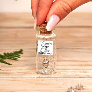 25th Silver Anniversary Gift, Sterling Heart Charm Bottle with Photo Collage, Personalized 25 Year Anniversary Keepsake & Custom Photo Gift