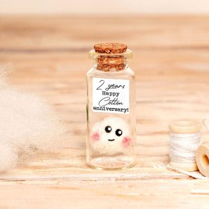 2nd Cotton Anniversary Gift – Mini Cotton Reel Bottle with Custom Photo, Personalized Anniversary Keepsake for Him & Her, second anniversary