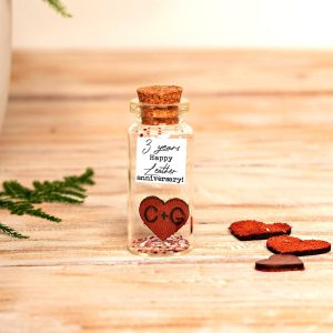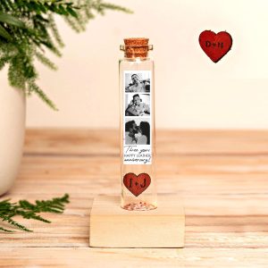 3rd Anniversary Leather Heart Gift: Photo Collage Miniature Bottle Keepsake