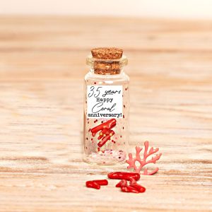 35th Anniversary Miniature Coral Gift: Personalized Photo Bottle