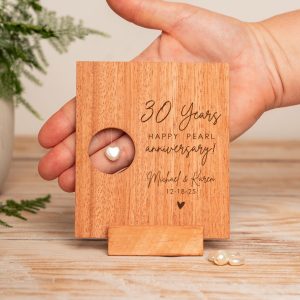30th Pearl Anniversary Gift, Faux Pearl Heart in Paper or Wood Card, Personalized 30 Year Wedding Card Custom Engraved Wood Anniversary Gift