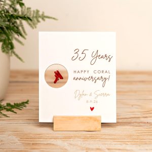 35th Anniversary Coral Gift: Laser Engraved Wood Card, Personalized Keepsake
