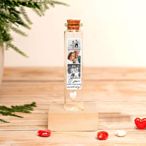 Silk Anniversary Gift, 12th anniversary gift, Red Silk Heart Bottle with Photo Collage, Custom Portrait Keepsake, Personalized Gift for Her