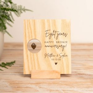 Personalized 8th Anniversary Bronze Heart Card: Engraved Wood or Paper