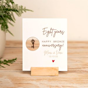 Personalized 8th Anniversary Bronze Key Wood Card – Engraved Keepsake